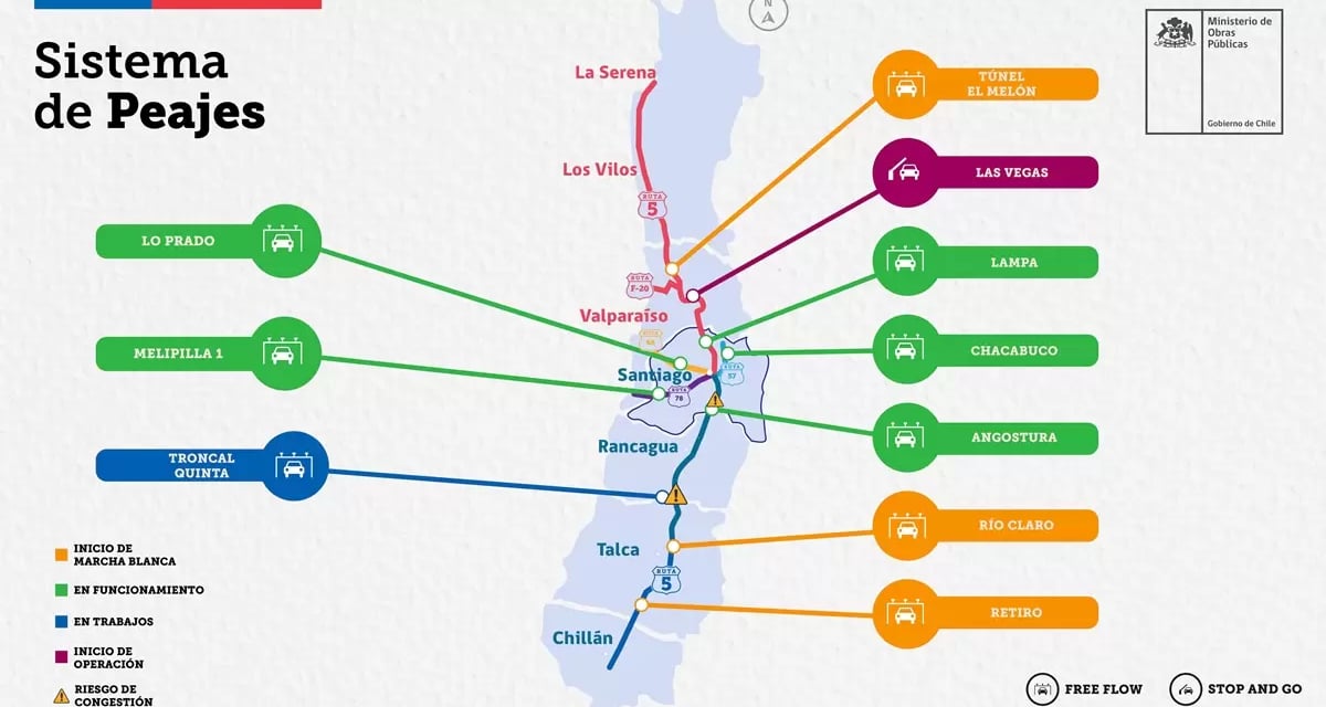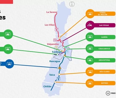Aquí tienes un desglose detallado sobre los peajes de la Ruta 5 en Chile, incluyendo sistemas de pago, valores actualizados (2024) y recomendaciones: